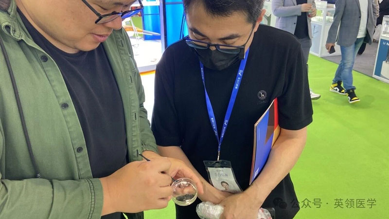展会期间,英领医学团队通过产品实物展示、临床案例视频播放,直观呈现材料的结构优势与应用效果;专业团队实时解答医生关于使用方法、适配场景等疑问,并提供样品试用体验。同时,公司技术专家在口腔修复专题研讨中,分享该材料的研发技术与临床数据,与全球同行探讨天然骨材料的创新方向。