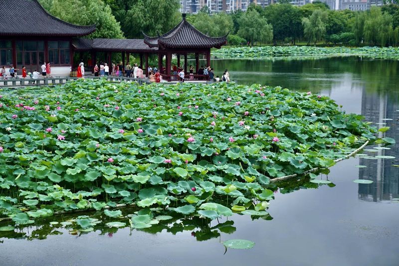 公园里,荷花生得可爱,谁叫这个季节属于她们呢。不必感叹花谢时,我们就欣赏这轰轰烈烈绽放便好。