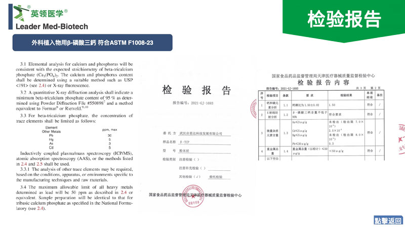 本产品符合国家行业标准,已在国家药监局完成主文档登记(外科植入物用β-磷酸三钙主文档,M2023035-000)可作为骨科医疗器械的原材料,用于制备生物陶瓷,3D打印陶瓷,磷酸钙骨水泥等。