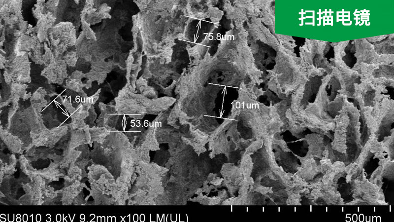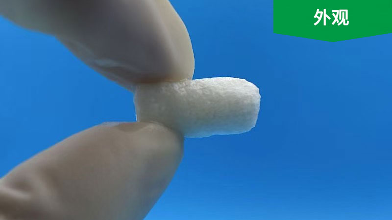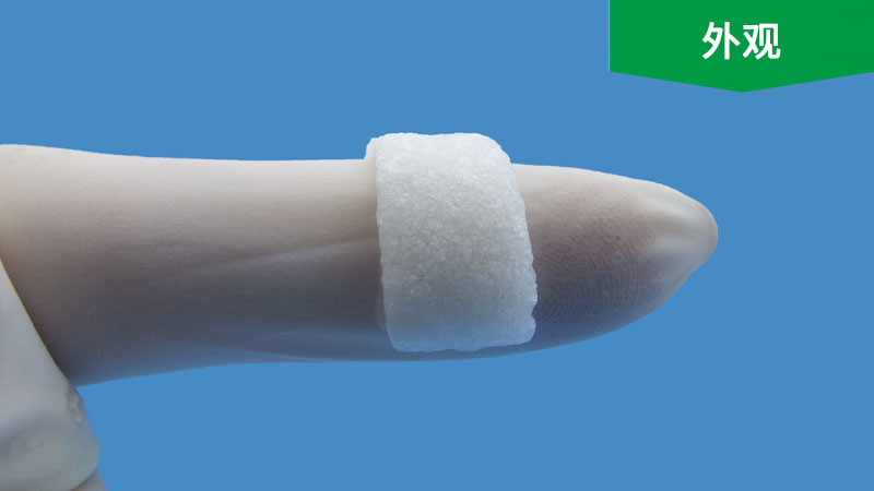 This product is made from porous bioceramic artificial bone particles (pure β-TCP) and collagen extracted from bovine tendons. The ratio of HA to collagen is not less than 95%. It is easy to handle in surgical implantation and can be squeezed and shaped to fill any irregular bone defect space. It can also be cut into desired shapes or mixed with physiological saline, blood, PRP, or bone marrow before implantation into bone defects. The porous bioceramic has a well-connected porous structure with a total porosity of 70% ± 10% and an open porosity rate greater than 50%. Its well-connected porous structure provides conditions for new bone formation through osteoconduction. The HA component degrades within 6–24 months after implantation, releasing calcium and phosphate ions as components for bone regeneration during degradation. The collagen component has a hemostatic effect when implanted into bone defects and gradually degrades within 2 months, which is beneficial for new bone formation.